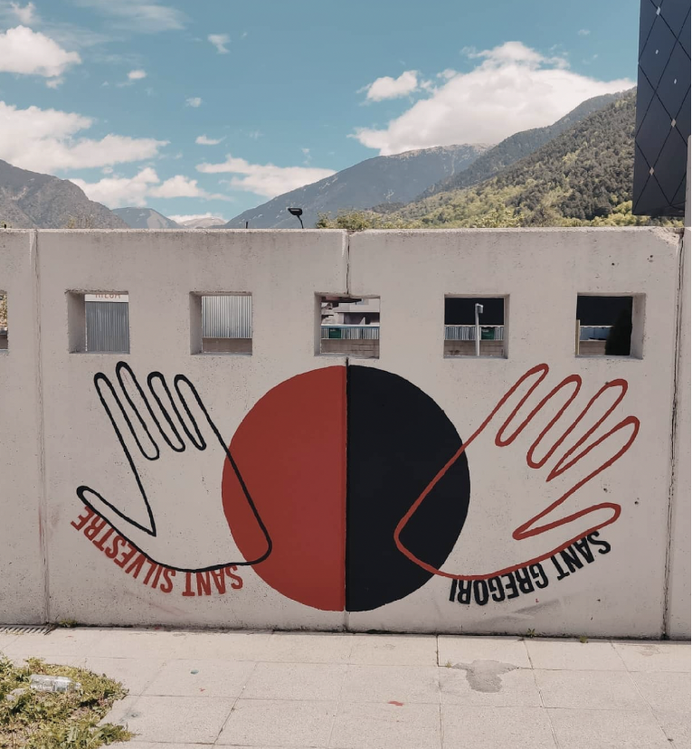 Mural realitzat per al Govern d’Andorra i ubicat a l’esterior de l’Espai Columba (Santa Coloma).